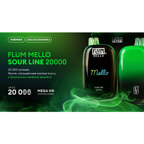 Flum Mello Sour Line 20000 — мощная одноразовая электронная сигарета с яркими кислыми вкусами и ресурсом до 20000 затяжек. Доступна для покупки оптом и в розницу с доставкой по России и СНГ.